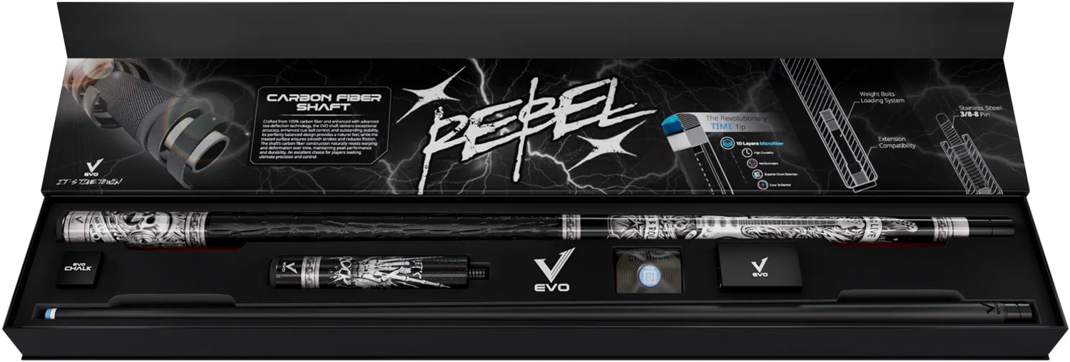目立つために生まれたEVO REBELは、自分のアイデンティティを持ち、群衆に流されないプレイヤーのために作られました。ロックにインスパイアされたスタイリングと最先端のカーボンファイバー&グラスファイバー技術が融合し、究極のコントロール、パワー、そして精度を実現します。大胆。ワイルド。恐れ知らず。グリップ一つで、このキューはあなたのために作られたのです。