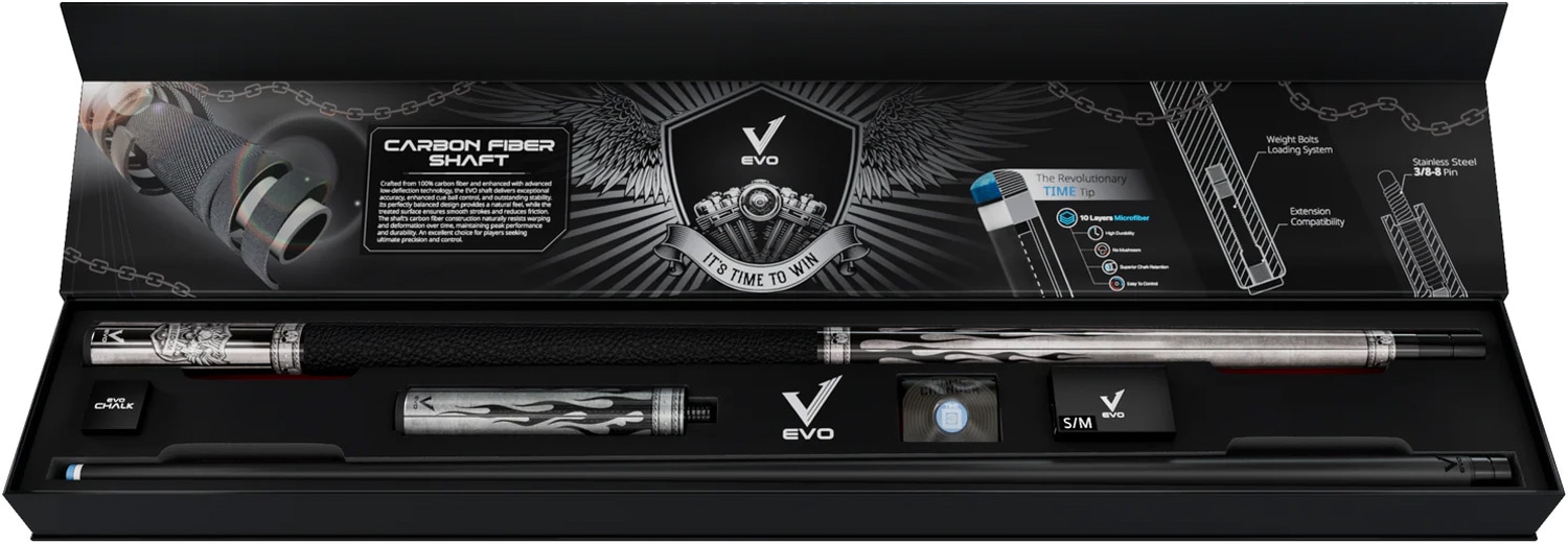 コンプリートプレイヤーキット:プレミアムプレイキュー + 6インチエクステンション + タイムチップ + グローブ + チョーク。ゲームに必要なものがすべて1つのパッケージに!