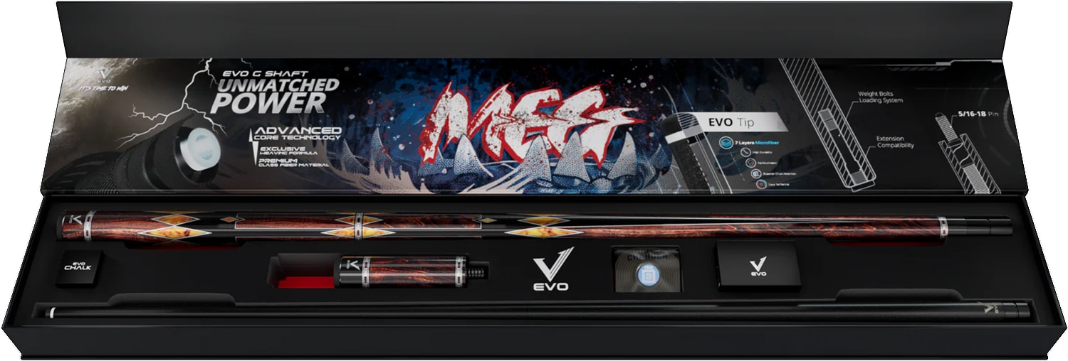 支配せよ。貪り尽くせ。容赦なし。食物連鎖の頂点に立つEVO MEGは、生のパワーをプレイアブルに昇華させたキューです。あらゆるショットは、決してミスをしない猛獣の鋭い一撃のよう。強烈でクリーン、そして決定打となるでしょう。最高級グラスファイバー製のMEGは、比類なき安定性と打撃力を提供します。それは単なるキューではなく、頂点を極めるプレイヤーのための武器です。ビリヤード台の捕食者。