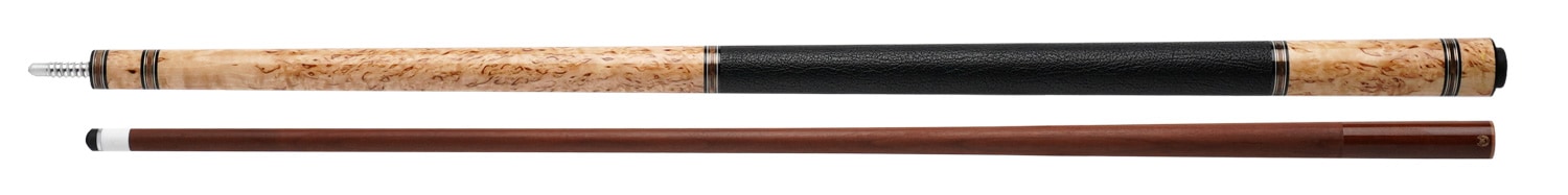 シャフトには、加熱処理により安定性を高めた「Torrefied Maple High(トリファイド・メープル・ハイ)」を採用。先端の中空加工によってディフレクション(トビ)を軽減し、緻密なコントロールを可能にしています。さらに、ジョイントには伝達力に優れた「ラジアル・アルミ」、グリップには手にしっとりと馴染む「革巻・水牛」を装備しており、実戦における操作性も妥協がありません。